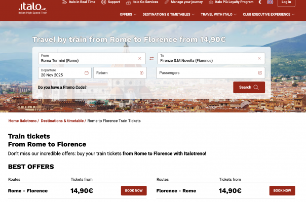 Not too bad at all. Those fares are in the same ballpark as Italy’s Italo high-speed trains. When I looked last week at second-class fares on the 352-mile ride between Milan and Rome, it worked out to US$34.70 – 9.9 cents per mile. Rome to Florence is about 162 miles, and that came out at 10.7 cents per mile, or $17.30.