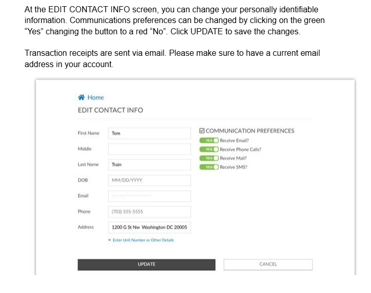 When you log in to the User Center, you can update your email, telephone number, address and communication preferences.