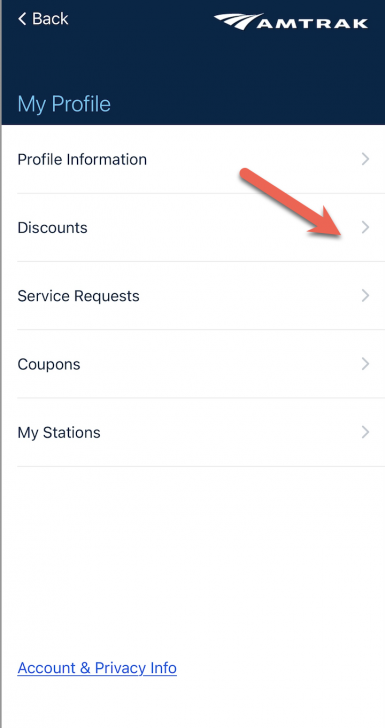 On the next screen, there will be a list of available discounts to add. Click on Rail Passengers Association: