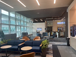 Only those with tickets can enter the station’s passenger facilities from the public area of the building, and this is controlled by automated gates, requiring one to scan their QR code. Brightline has ticket purchase kiosks and a customer service agent located just outside the gates to assist passengers. Security personnel are also present at the gates and carry-on baggage can be subject to screening, which is obviously a difference for those of us used to Amtrak. Brightline does also offer checked baggage for larger items. Similar entry gates also control entrance from the general passenger area into the Premium Class lounge. The Premium class lounge includes a large comfortable seating area and complementary food and beverage items and one of the neatest high-tech gadgets in the station – a complementary self-service bar kiosk where one swipes their ticket and pours their own beer or cocktail.