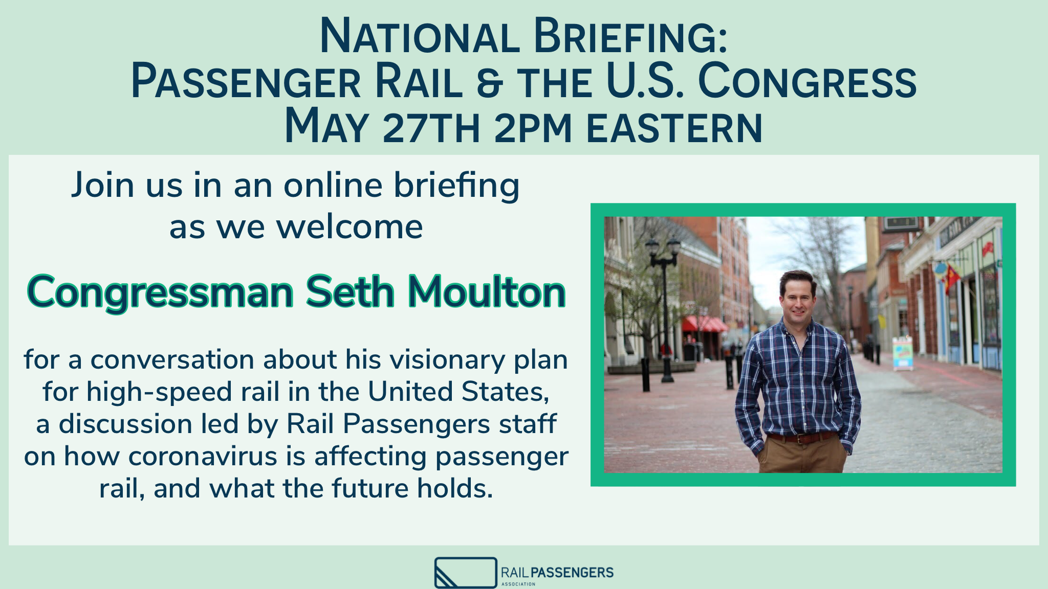 Join Rail Passengers May 27th for a National Passenger Rail Briefing with Special Guest Rep. Seth Moulton of Massachusetts